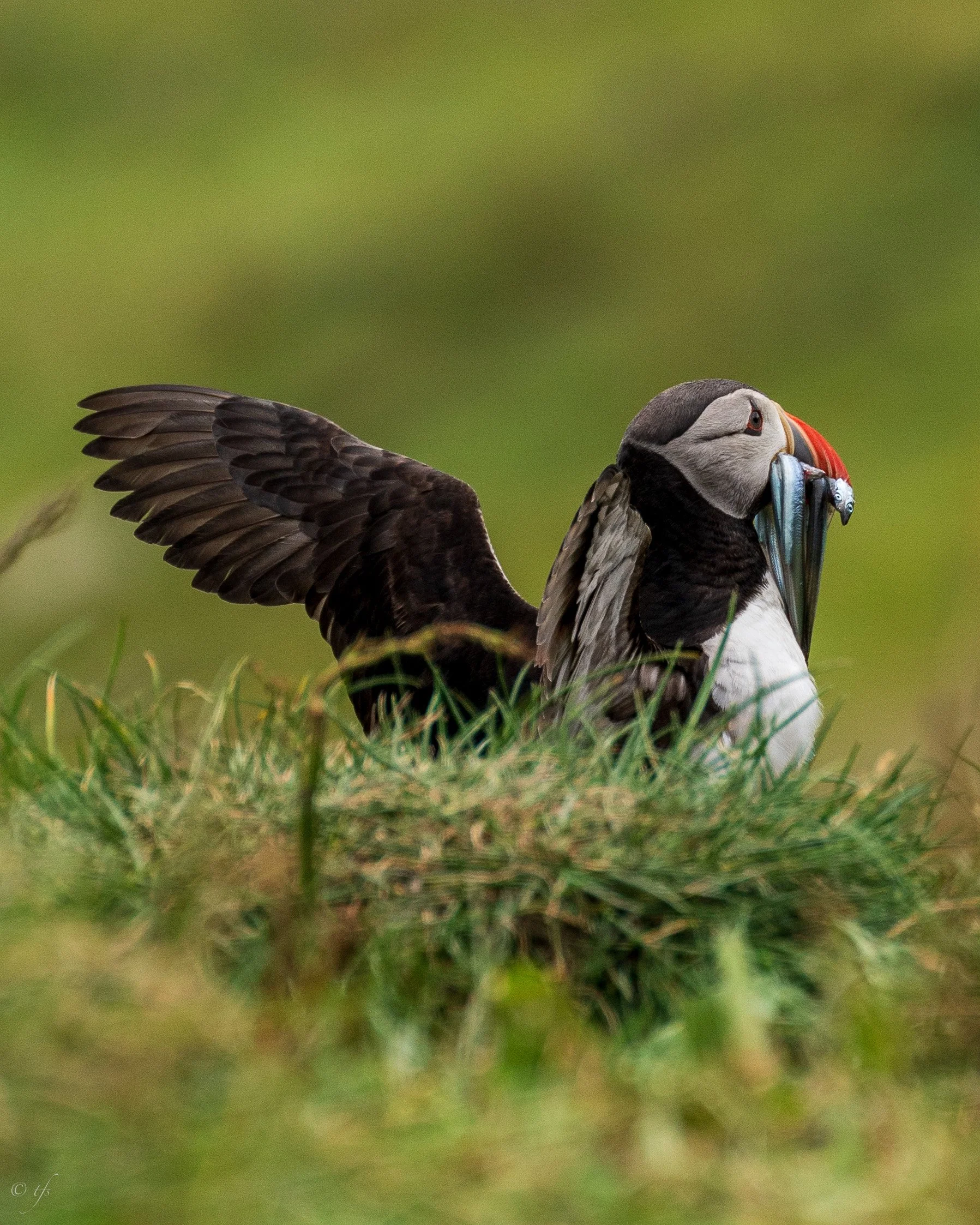 Puffins, with their comical appearance and distinctive beaks, are truly a marvel of nature. Known for their adorable clumsiness when flying, they often crash land, creating moments of both humor and awe. Yet, it's their unique charm that endears them to all who visit Mykines.